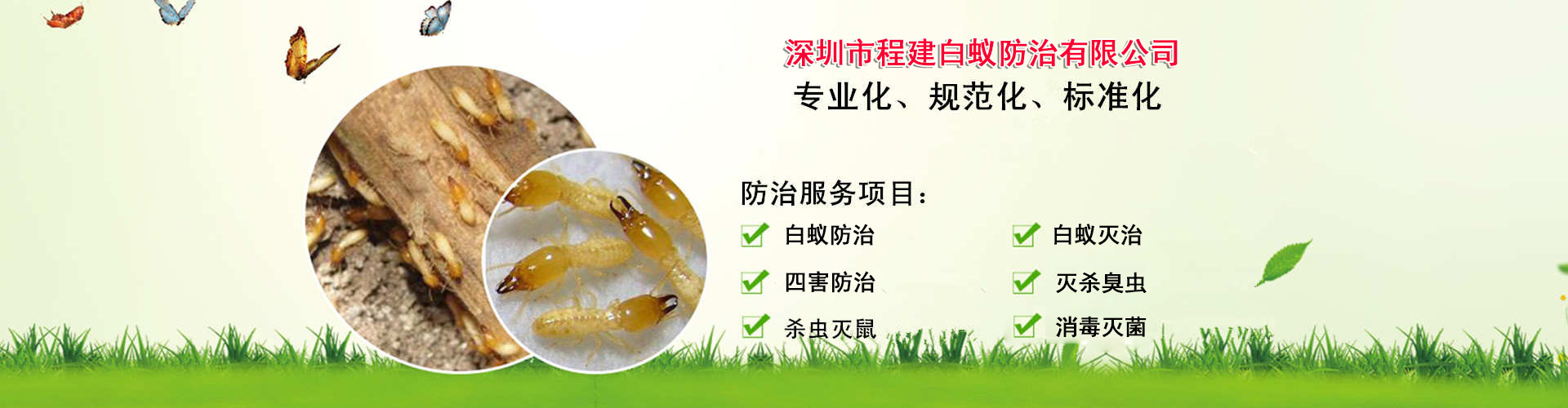 深圳市程建白蟻防治中心有限公司:致力于白蟻防治工程、深圳市白蟻防治公司、預(yù)防白蟻工程、建筑工程白蟻預(yù)防、白蟻滅治、殺白蟻、滅白蟻、治白蟻、除白蟻、防白蟻,白蟻消殺、預(yù)防白蟻、深圳市殺白蟻公司、有害生物防制:深圳市殺蟲(chóng)公司、深圳消殺公司、深圳市消殺中心、除四害、白蟻如何根治、深圳市消毒公司、家里發(fā)現(xiàn)白蟻怎么辦、滅蟑螂、 工廠殺蟲(chóng)、物業(yè)殺蟲(chóng)、辦公室消殺、工業(yè)園殺蟲(chóng)等、專(zhuān)注于為客戶(hù)民提供專(zhuān)業(yè)解決蟲(chóng)害方案,通過(guò)技術(shù)團(tuán)隊(duì)創(chuàng)新研發(fā)新技術(shù)和學(xué)習(xí)傳統(tǒng)技術(shù)相結(jié)合,針對(duì)客戶(hù)需求,為客戶(hù)量身打造更加全面的白蟻防治、白蟻滅治、深圳市殺蟲(chóng)、深圳消殺、深圳市殺白蟻等有害生物防制施工措施。